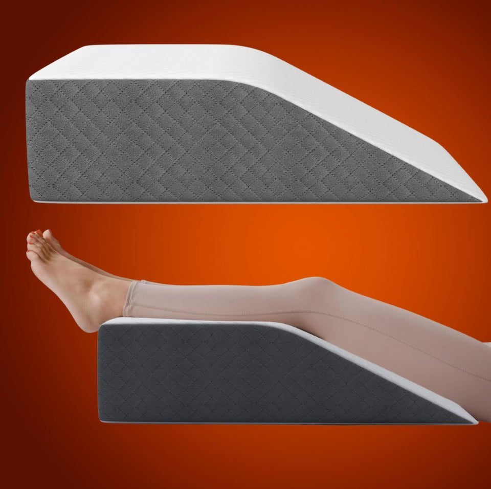 A wedge pillow to assist hold legs elevated